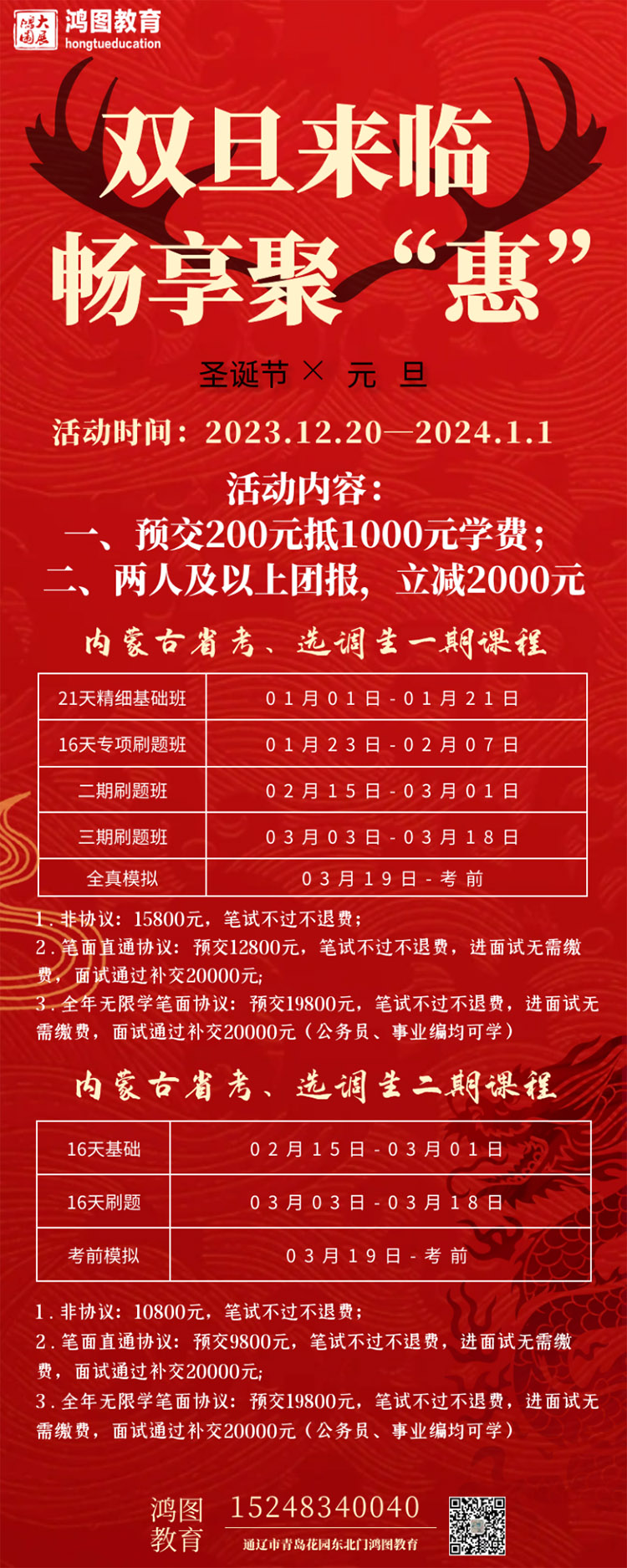 鴻圖教育,全名內(nèi)蒙古鴻圖教育培訓(xùn)有限公司,主營國家公務(wù)員、內(nèi)蒙古公務(wù)員、事業(yè)編、教師、村官、三支一扶、社區(qū)民生、招警、銀行等公職類考試筆試、面試培訓(xùn)。