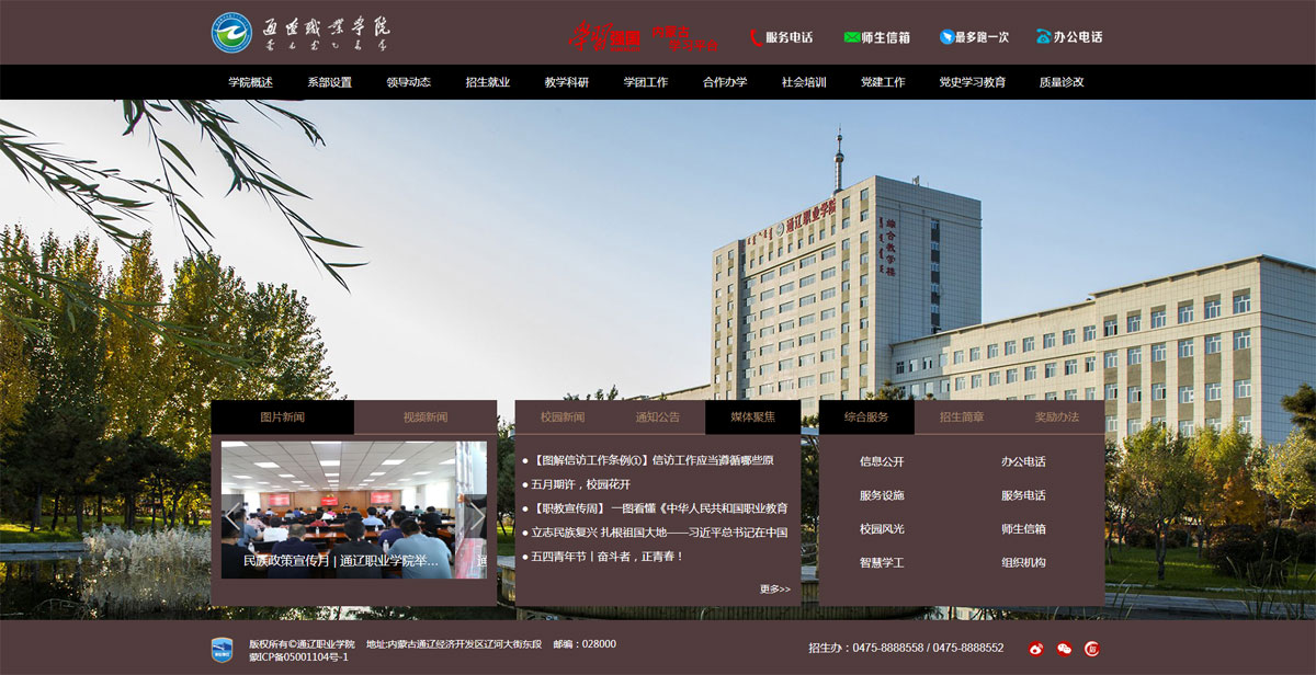 通遼職業(yè)學(xué)院是一所公辦全日制綜合性普通高等院校,以舉辦高等職業(yè)教育為主,兼?zhèn)渲械嚷殬I(yè)教育、電大開放教育和社會(huì)培訓(xùn)職能。學(xué)院成立于 2004 年,由原哲盟師范學(xué)校、哲盟衛(wèi)生學(xué)校、哲盟教育學(xué)院、內(nèi)蒙古電大通遼分校合并組建而成,辦學(xué)歷史始于 1951 年。2009 年通過(guò)教育部高職高專人才培養(yǎng)工作評(píng)估,現(xiàn)為內(nèi)蒙古自治區(qū)示范性高等職業(yè)院校、自治區(qū)園林式單位、自治區(qū)文明校園,是中國(guó)教育發(fā)展戰(zhàn)略學(xué)會(huì)產(chǎn)教融合專業(yè)委員會(huì)常務(wù)理事單位、全國(guó)高職高專校長(zhǎng)聯(lián)席會(huì)成員單位。
