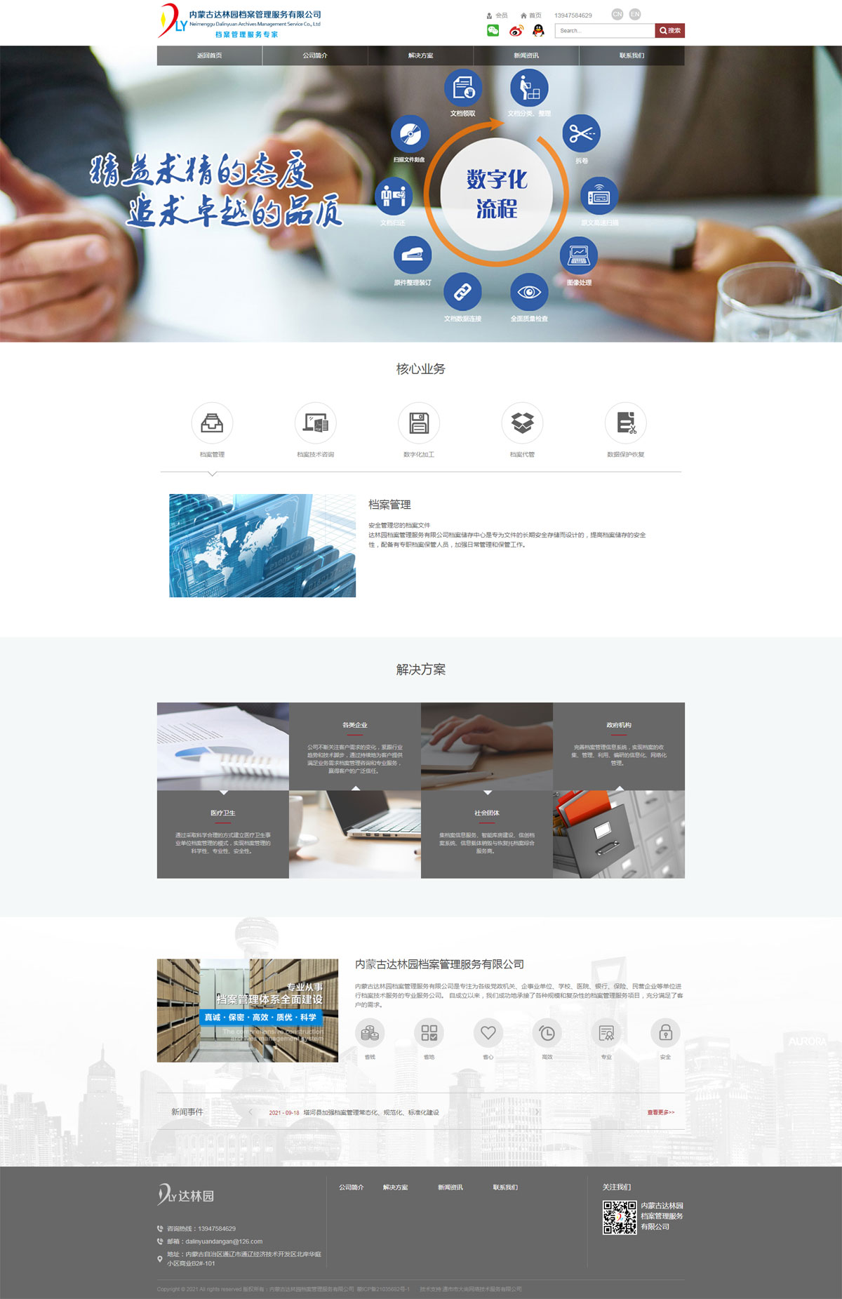 內(nèi)蒙古達(dá)林園檔案管理服務(wù)有限公司是專注為各級(jí)黨政機(jī)關(guān)、企事業(yè)單位、學(xué)校、醫(yī)院、銀行、保險(xiǎn)、民營企業(yè)等單位進(jìn)行檔案技術(shù)服務(wù)的專業(yè)服務(wù)公司。主要從事各級(jí)各類文件資料檔案整理、檔案管理技術(shù)、檔案保管技術(shù)、檔案數(shù)字化技術(shù)咨詢、技術(shù)交流、技術(shù)服務(wù);檔案管理軟件開發(fā);檔案用品與設(shè)備銷售;檔案館信息化、智能化建設(shè),為社會(huì)各界提供檔案整理、數(shù)字化、歸檔、保管、查詢、利用等系列化服務(wù)?,F(xiàn)有檔案專業(yè)顧問多名,專業(yè)技術(shù)人員多名。