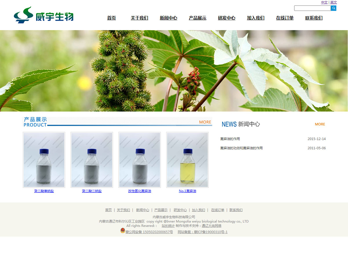 內(nèi)蒙古威宇生物科技有限公司,成立于2012年,注冊資金1500萬元,位于通遼市科爾沁區(qū)工業(yè)園區(qū),企業(yè)占地面積72384平方米,是一家以蓖麻籽為基礎(chǔ)原料,集科研、生產(chǎn)、銷售于一體的高新技術(shù)企業(yè)。